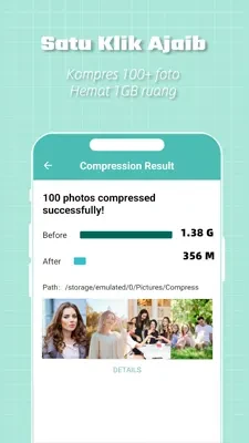 - Mengurangi ukuran foto secara otomatis: Aplikasi akan mengecilkan ukuran file dengan cepat dan efisien.