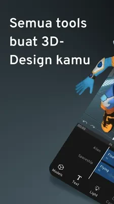 Berbagai tool dasar untuk modeling, animasi, serta pengaturan objek sudah tersedia di dalam satu workspace. Dengan desain yang simpel namun lengkap, proses pembuatan model menjadi lebih efisien dan nyaman dilakukan, bahkan di layar perangkat yang relatif kecil seperti smartphone.
