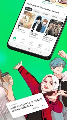 WEBTOON merupakan salah satu platform membaca komik digital yang sangat populer di dunia. Aplikasi ini hadir di berbagai perangkat untuk memberikan pengalaman membaca yang nyaman, menarik, dan profesional baik bagi pembaca maupun kreator komik. Dengan tampilan yang modern serta navigasi yang mudah digunakan, pengguna dapat menemukan berbagai judul komik hanya dengan beberapa sentuhan saja.